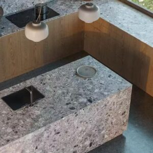 Terrazzo celebrates playful sophistication with its dynamic composition of scattered stone fragments set against a refined base. Blending texture and movement, it brings visual energy while maintaining a clean, contemporary feel. Each speckled detail adds character and depth, creating a surface that feels both artistic and architectural. Versatile and enduring, Terrazzo enhances kitchens, bathrooms, commercial spaces, and feature walls with a modern yet timeless aesthetic that effortlessly balances creativity and elegance.